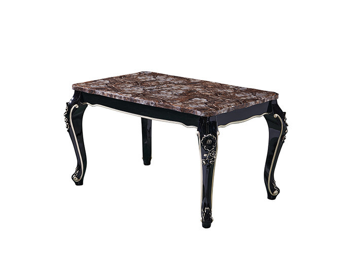 Table de salle à manger en bois solide de marbre d'hôtel de restaurant de famille de rétro couleur de luxe de bois d'ébène