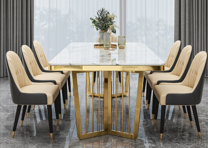 Table de salle à manger de luxe de banquet de famille de table de salle à manger de marbre d'acier inoxydable de sens de conception moderne